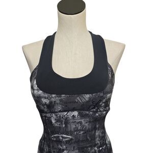 Lululemon Scoop Neck Workout Tank Top White Gray Cursive Script Womens Size 4