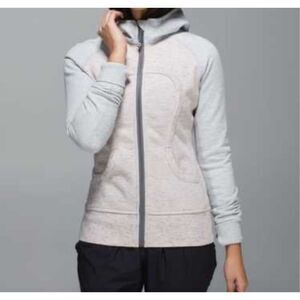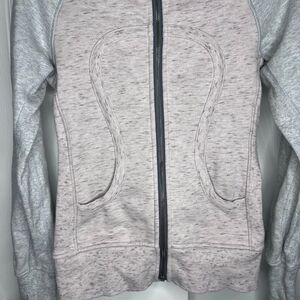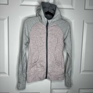 Lululemon Scuba Full Zip Hoodie Size 4 Pink Gray Big embroidered logo on hood.