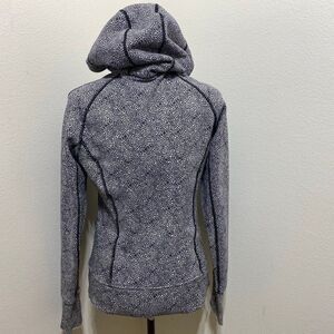 Lululemon Scuba Full Zip Plush Petal Deep Coal Ghost Hoodie Size 8 Wear to cuffs/small tears see last 4 photos Sold as is Measurements (approximate) Shoulder-Shoulder: 17” Arm pit- Arm pit: 18.5” Shoulder to hemline: 25” Sleeve (shoulder/cuff): 26” See photos for further description K1