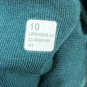 Soft, velvet corduroy fabric is quick drying and lined in a soft cotton jersey. Features hand pockets with hidden card sleeve, zipper garage to keep chafe in check, elastic zipper that pulls doubles as an emergency hair tie, and thumbholes. Size 10 and in great condition! Color is "storm teal" which is green.