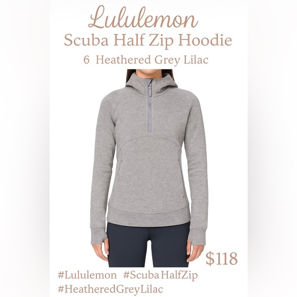 Lululemon Scuba Half Zip Hoodie – Size 6 – Heathered Grey Lilac