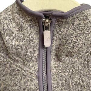 Stay cozy in this iconic Lululemon Scuba Half Zip, known for its thick fleece interior, oversized collar, and athletic fit. This version features a soft heathered grey base with lilac zipper and interior accents.