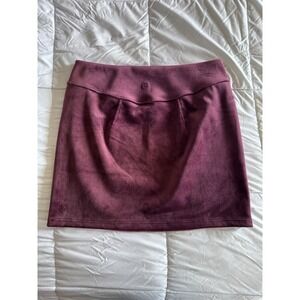 This is a Lululemon Scuba High Rise Mini Skirt in size Large. Made of velvet in a GARN (red) color, it features a high rise, pull on closure, and stretch fabric. The skirt has embroidered accents and a zipper detail. Suitable for various occasions like travel, parties, workwear, and more. Perfect for adding a touch of style with a Rock, Bohemian, City, or Preppy theme.