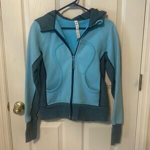 Lululemon Scuba Hoodie Blue Shhhh I'm Meditating Full Zip Stripe Side Thumbholes