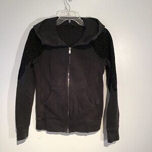 Lululemon Scuba Hoodie Light Cotton Fleece (Floral Flock) Black Size 6