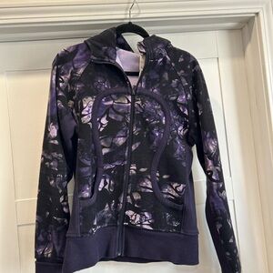 Chic lululemon jacket with a striking black and purple design. Ideal for a bold look.