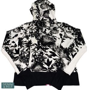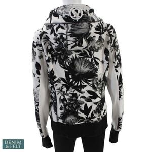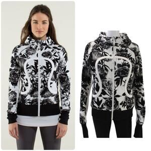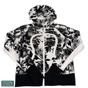 Lululemon Scuba Hoodie Stretch Brisk Bloom Black White Print Full Zip Size 10