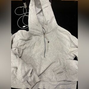 Soft and comfortable hoodie with a relaxed fit. Features a half-zip front and kangaroo pocket. Ideal for everyday wear. Size XS/S. In good condition, only slightly discoloration on the front either side of the zipper (as can see in the photos)