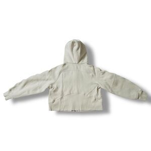 Lululemon Scuba Oversized cropped Full Zip Hoodie in size XSmall Small and light off white color. Features a cozy and breathable cotton blend with an oversized fit, full front zip, large hood, and thumbholes. In good used condition with some gentle wear but plenty of life left.