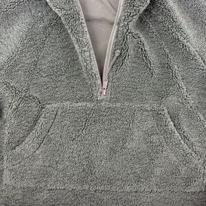 Forest green chunky Sherpa fleece pullover with hood.