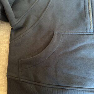 Description: soft against skin, light weight warmth, kangaroo pocket with hidden phone sleeve, elastic zipper doubles as hair tie, thumbholes