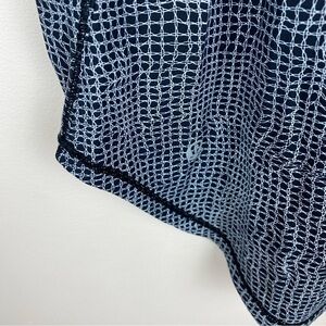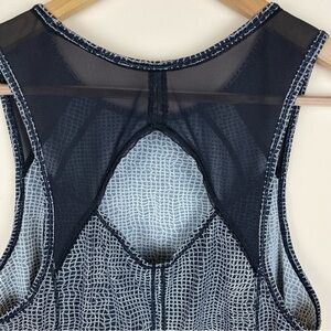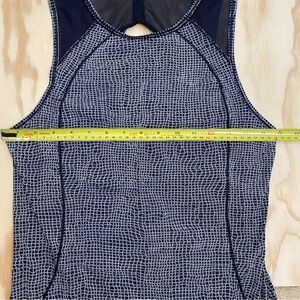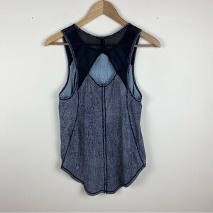 Lululemon Sculpt Tank in Fall Net White Black. This lightweight top has mesh fabric panels and a cutaway between the shoulders for maximum breathability. Fabric is sweat-wicking and four-way stretch. Very good preowned condition.