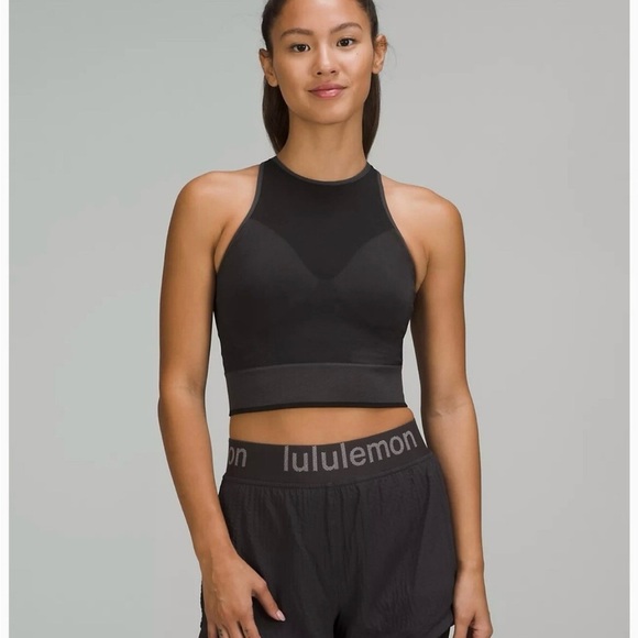 Elevate your training wardrobe with this sleek and supportive Lululemon seamless mesh training tank. Designed with a high neck and racerback for a streamlined fit, this tank features a built-in bra for medium support, breathable mesh paneling, and four-way stretch for total comfort.