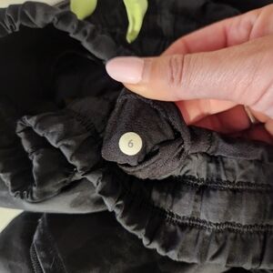 Lululemon Seek The Heat Shorts Leapard Print Gray Black Size 6. Pre owned in good condition. There is one tiny paint spot- see photo. Measurements are in the photos.