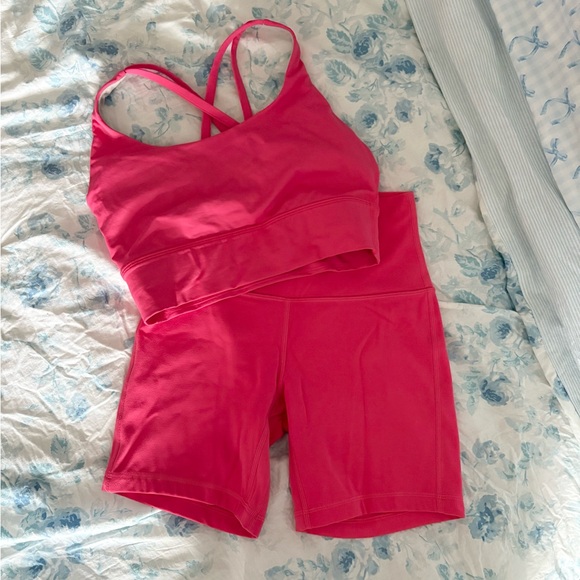 Basically new lululemon set top has original padding and is size 6 bottoms are double lined and size 4