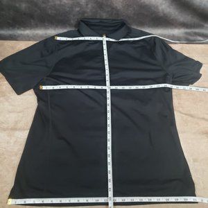 Lululemon black polo workout shirt. It's built to perform sweat after sweat, has plenty of stretch to it, and is perfect for running and training!