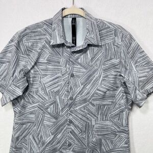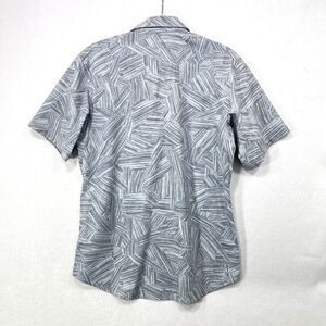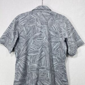 Polyester and elastane blend shirt that's great for many occasions. Technical shirt with 4 way stretch, moisture wicking, breathable, and quick drying. Abstract print in soft grey.