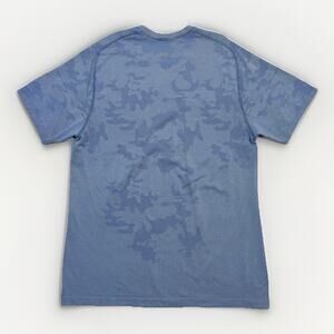 Mens short sleeve performance shirt by Lululemon in blue with a tonal camo jacquard design.