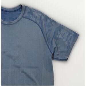 Lululemon Shirt Mens Large Blue Camo Seamless Athletic Training Short Sleeve