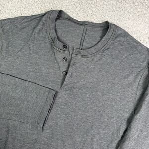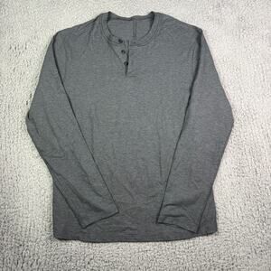Lululemon Shirt Mens M Gray Henley Stretch Cotton Fundamental Basic Long Sleeve