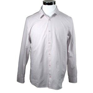Lululemon Shirt Mens Medium Lavender Long Sleeve Down To The Wire Work Button Up. No size tag, chest measures 21" across laid out flat. Excellent pre owned condition, little dot mark behind arm as shown. Measures 21" chest, 18" shoulders and 28.5" length. Fast professional shipping. 9/30/2025 25