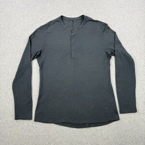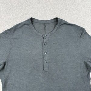 Lululemon Shirt Mens Medium Blue Thermal Waffle Knit Henley Long Sleeve Cotton
