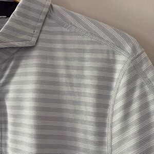 Lululemon Shirt Mens Medium Gray Striped Golf Short Sleeve