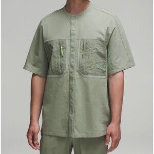 Lululemon Shirt Mens Medium Laurel Green Water-Repellent Hiking Short Sleeve NWT