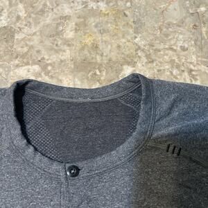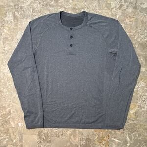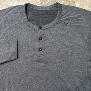 Lululemon Shirt Mens Medium Metal Vent Tech Henley Grey Long Sleeve Gym Lounge