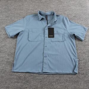 Lululemon Shirt Mens Medium Relaxed Fit Short Sleeve Button Up Blue Casual Work