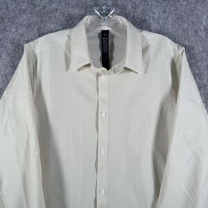 Lululemon Shirt Mens Size Medium Beige Pin Stripe Long Sleeve Venture Slim Fit