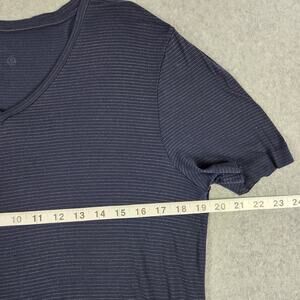 Lululemon Shirt Mens Size Small V Neck Tee Navy Blue Pin Stripe