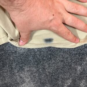 Lululemon Shirt Mens XL Beige Short Sleeve Crew Neck Boxy Cotton Tee Flaw Stain