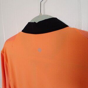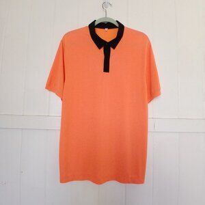 Lululemon Shirt Post Practice Polo Mens Large Orange Black Button Down Stretch*