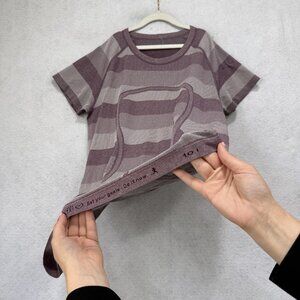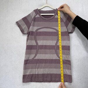 Lululemon Shirt Womens 10 Purple Striped Short Sleeve Crew Neck Seamless Tee