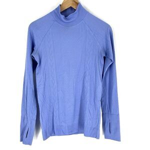 Lululemon Shirt Size 6 Womens Periwinkle Blue Rest Less Mock Neck Cable Print