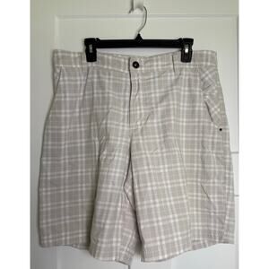 Lululemon Shorts Mens 38 Beige White Plaid Nylon Kahuna II Active Golf Casual