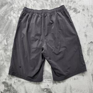 Lululemon Shorts Mens M Gray Drawstring Contrast Faux Leather Zip Pockets Gym