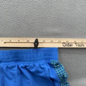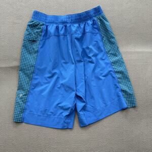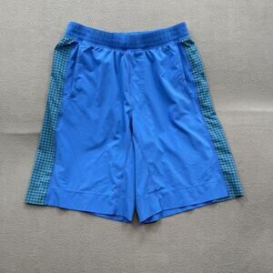 Lululemon Shorts Mens Medium Blue Green Plaid Side Panels Pockets Elastic Waist