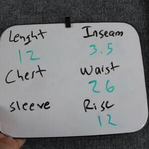 Measurements shown on board: Waist 26 in; Rise 12 in; Inseam 3.5 in; Length/Outseam 12 in