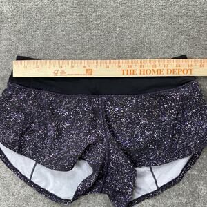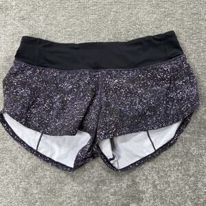 Keywords: Lululemon Speed Up Shorts, womens running shorts, speckled print shorts, activewear, workout shorts womens, black purple athletic shorts