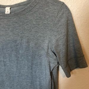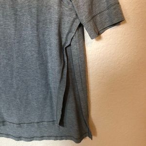 Cute Lululemon top! Worn once for a hiking trip. Perfect condition! Really flattering on and great material. Has a spilt down both sides that makes it super cute for running errands and breathable for working out!