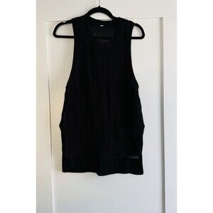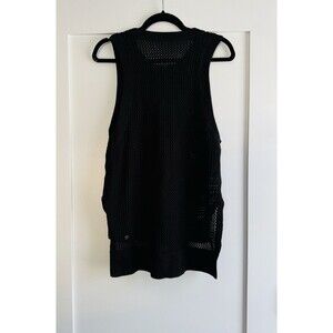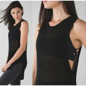 Lululemon Simply The Vest Black Crochet Mesh Knit Top Hi Low - See Size Notes
