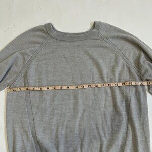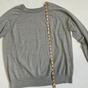 Lululemon Simply Wool Merino Knit Sweater pullover Heather Starlight Gray metal Lululemon logo medallion at back hem READ