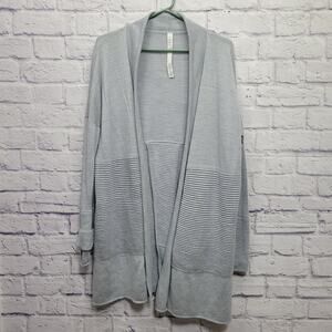Lululemon Sit In Lotus Wrap II Sweater Size 8 Heathered Chambray Merino Wool