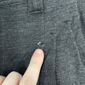 Pleated. 100% merino wool. Button closures. Moisture-wicking, preshrunk, breathable. Medium rise with trouser fit. The color is labeled as black yet more greyish black.