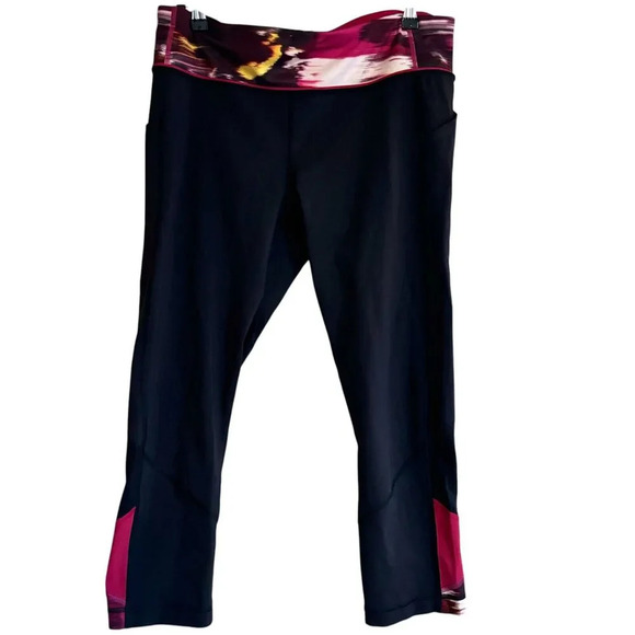 Lululemon Size 12 Pace Rival Crop Pigment Wind Berry Rumble Black Multi Leggings