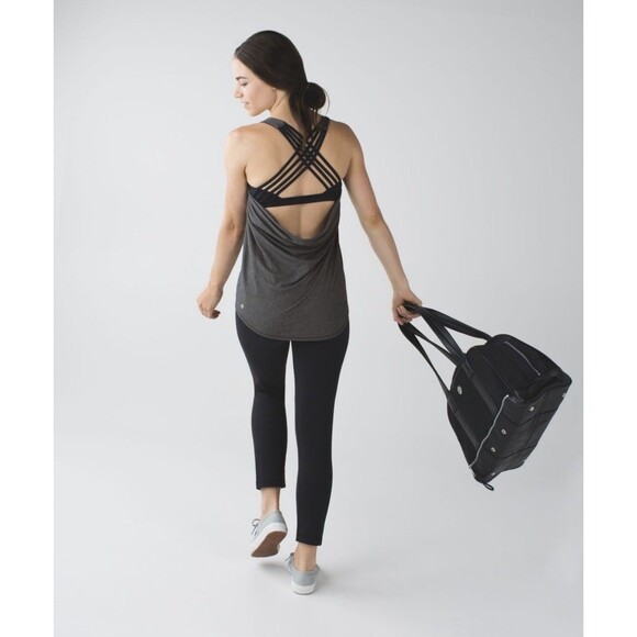 Lululemon Size 12 Wild Sports Bra Tank Top Heathered Black Strappy Athleisure