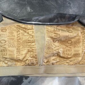 Staining @ armpits and on the sides of armpits, ripping noise on straps (they dried out when stored?), stain on sports bra