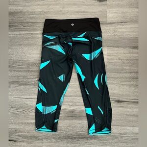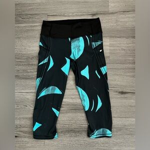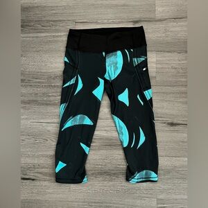 Lululemon Size 4 Run Top Speed Crop Leggings Back Spin Stroke Peacock Blue Black